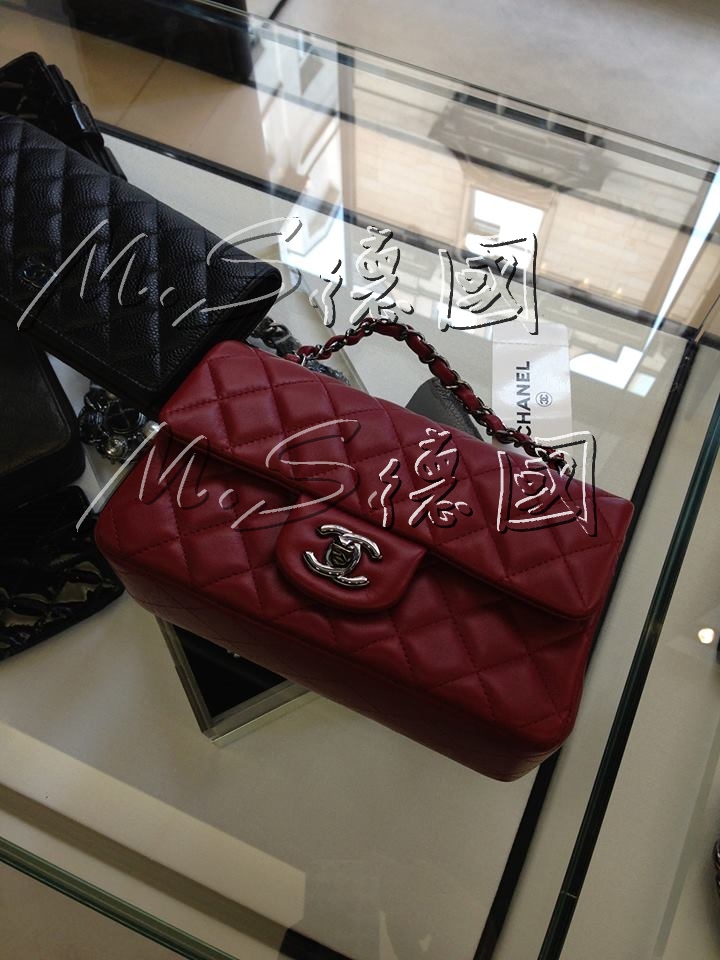 【CHANEL♥紅色羊皮coco♥銀鍊】